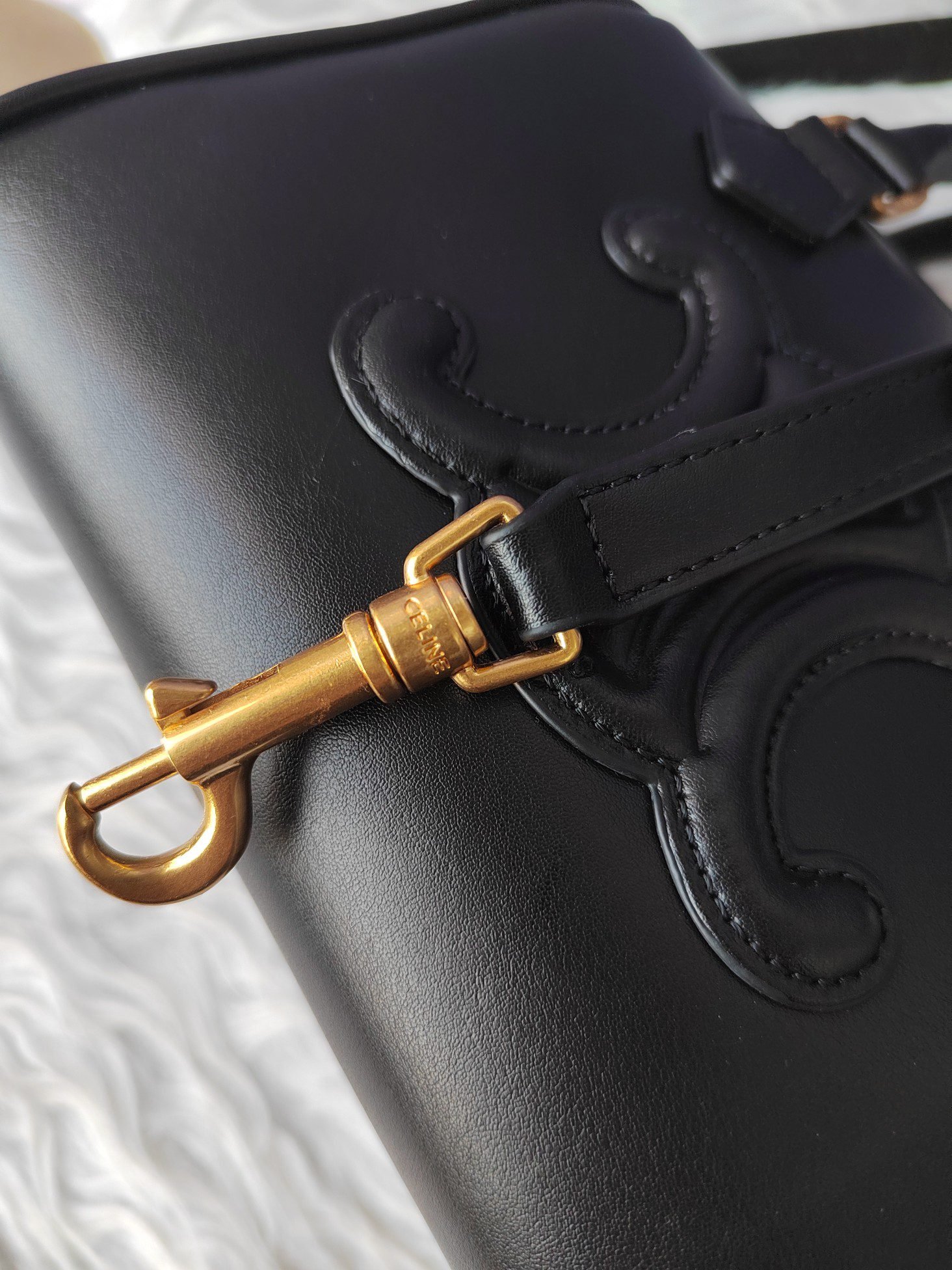 CELINE Black Underarm Bag, Shoulder Back and Handheld, Zipper Opening, Leather Flip Cover, Equipped with TRIOMPHE Magnetic Buckle, Sizes 22cm-7.5cm-17cm