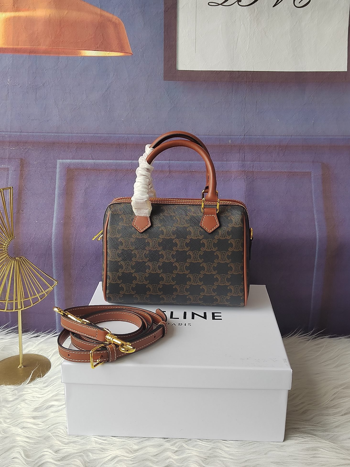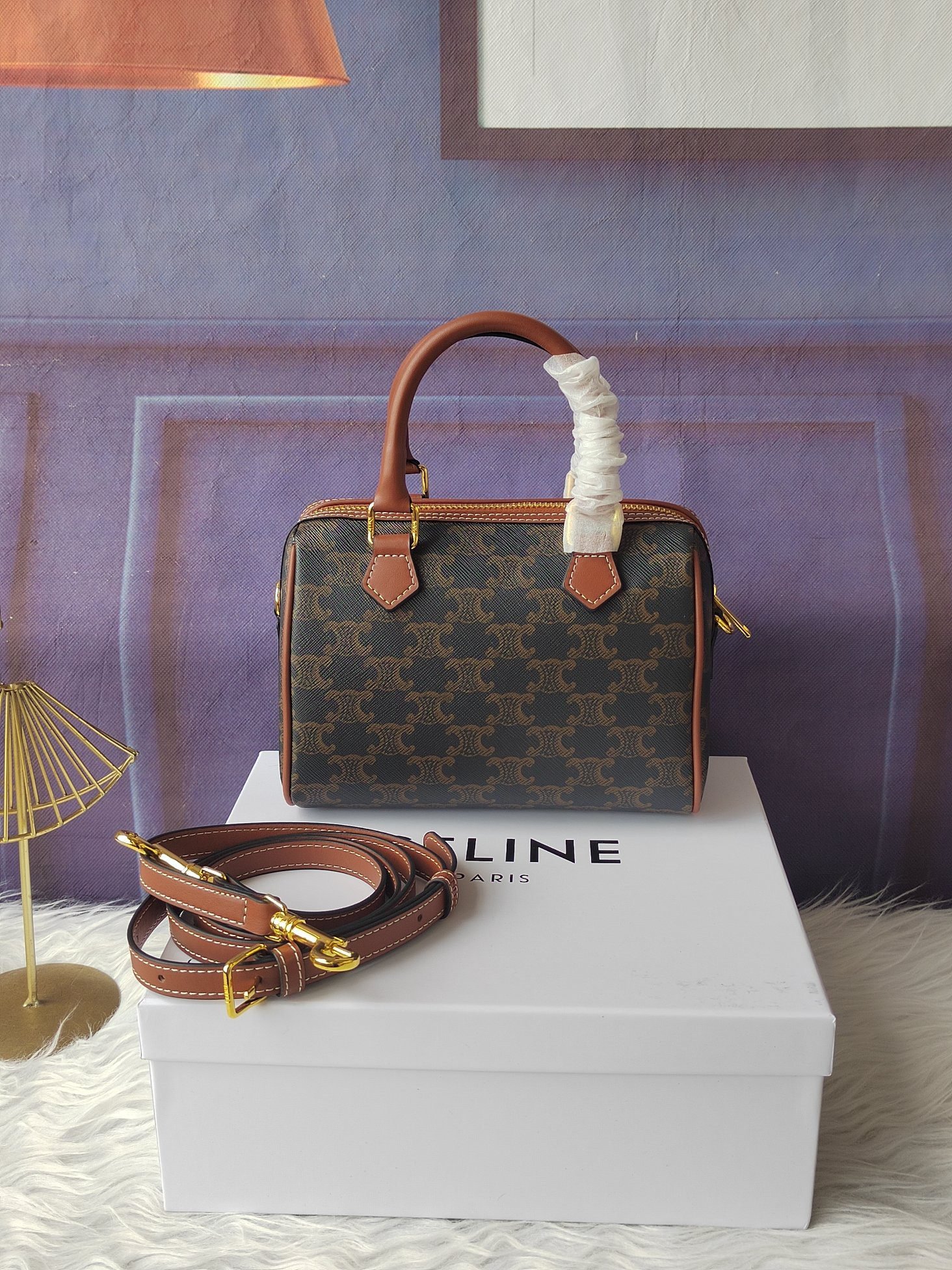 Celine Boston bag, versatile, can be carried, shouldered, or slung over, with detachable and adjustable shoulder straps, size 20-14-10.5cm