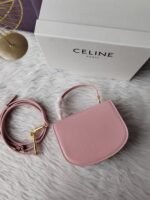 Celine saddle bag, mini handbag, flip cover with metal TRIOMPHE buckle, crossbody or shoulder back. Size 15cm-11cm-4cm