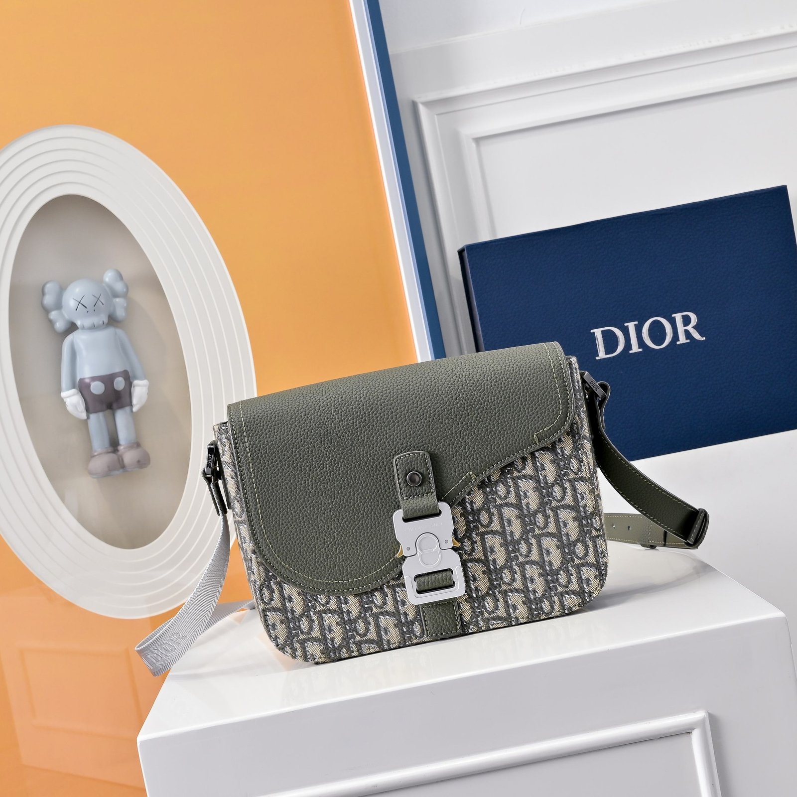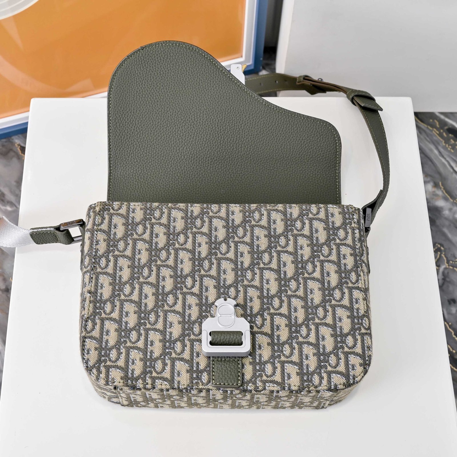 Green Oblique print, with grain leather flap highlighting the saddle contour, embellished with aluminum buckle. The interior compartments are spacious and equipped with patch pockets, which can accommodate various daily necessities. Mini style, paired with adjustable leather and Christian Dior logo jacquard shoulder straps, can be worn shoulder or crossbody, size: 23 x 18 x 6 cm