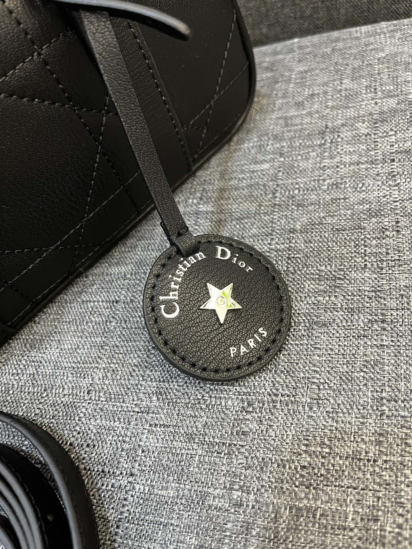 Zipper closure Adjustable top handle with "CD" buckle Two metal rings can connect the embroidered shoulder straps and thin shoulder straps of this series Size: 22 x 13 x 9.5 centimeters