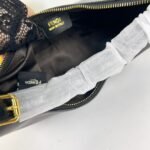 Fendi Praphy Underarm Bag, featuring a crescent shaped design, with the classic metal logo [FENDI] decorated at the bottom of the bag. The contour of the bag is very close to the body’s lines, making it fashionable when carried under the armpit. The size is 29×24.5x10cm