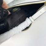 Fendi Praphy Underarm Bag, featuring a crescent shaped design, with the classic metal logo [FENDI] decorated at the bottom of the bag. The contour of the bag is very close to the body’s lines, making it fashionable when carried under the armpit. The size is 29×24.5x10cm