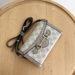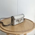 The new Horsebit 1955 series handbags embody the double-ring and elongated design that inherits the brand's equestrian roots. This small handbag is crafted from the brand-new GG canvas, featuring a unique hot embossing technique that renders exquisite patterns, creating a soft and refined touch. Dimensions: 22.6x12.7x5.6cm