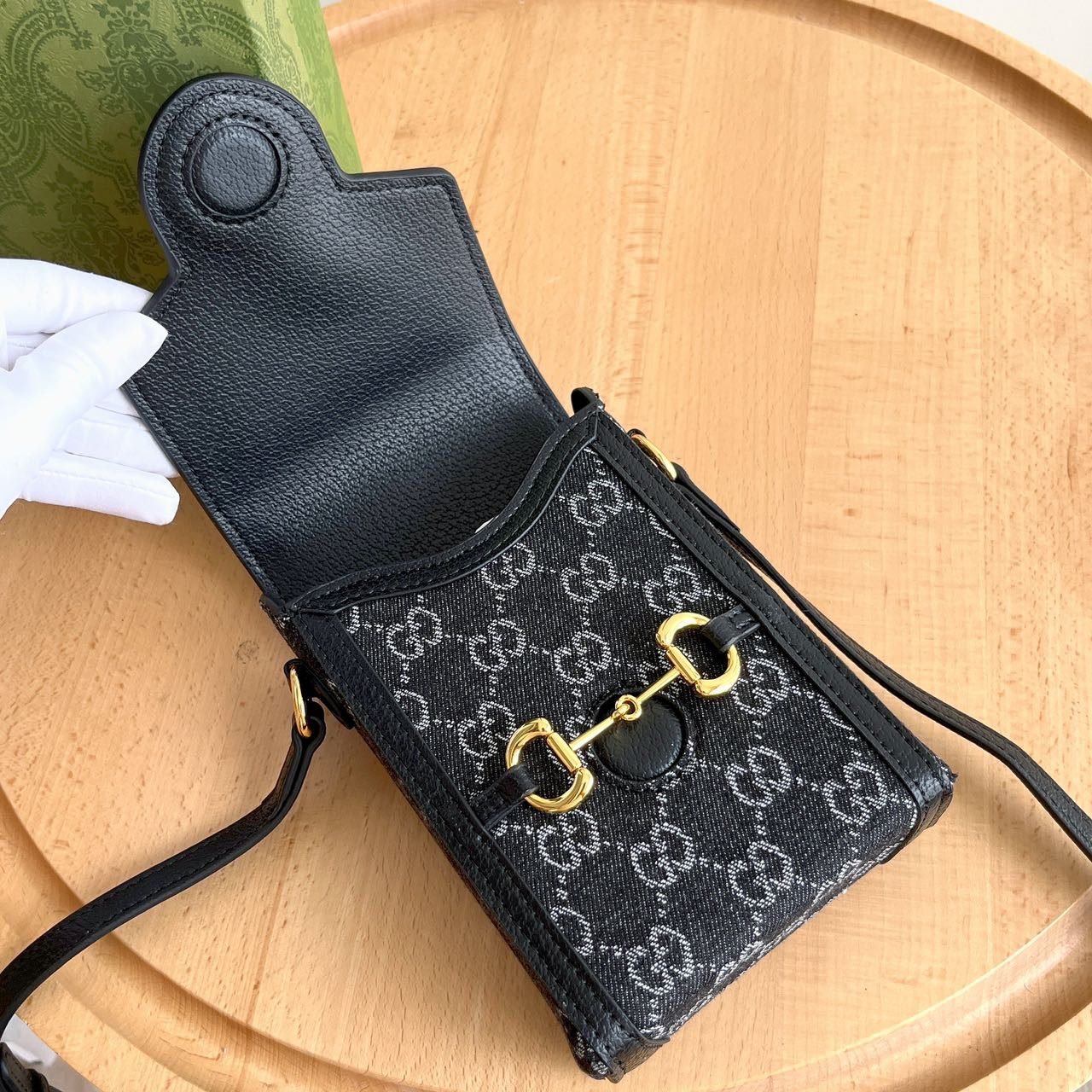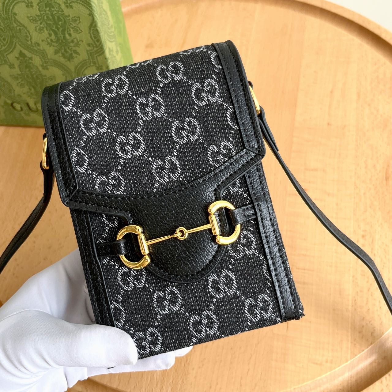 1955Horsebit horseneck buckle phone bag, small and chic rectangular shape, versatile practical design and style, available in multiple colors, size: 11.5 * 17 * 4cm