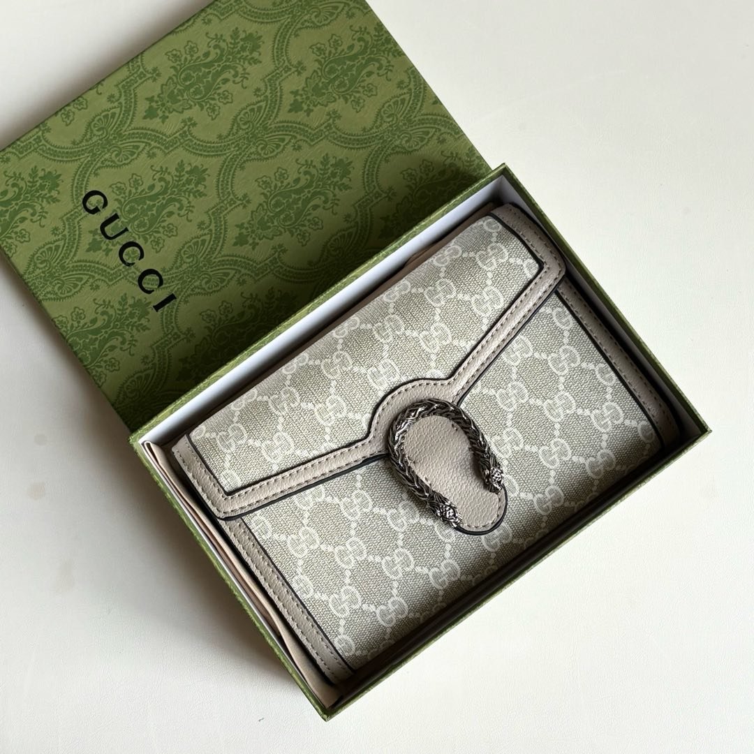 GG Dionysus WoC chain mini handbag/wallet, equipped with tiger head spur buckle and flip design, with multiple compartments inside to meet daily travel needs. Size: 20×13×6cm