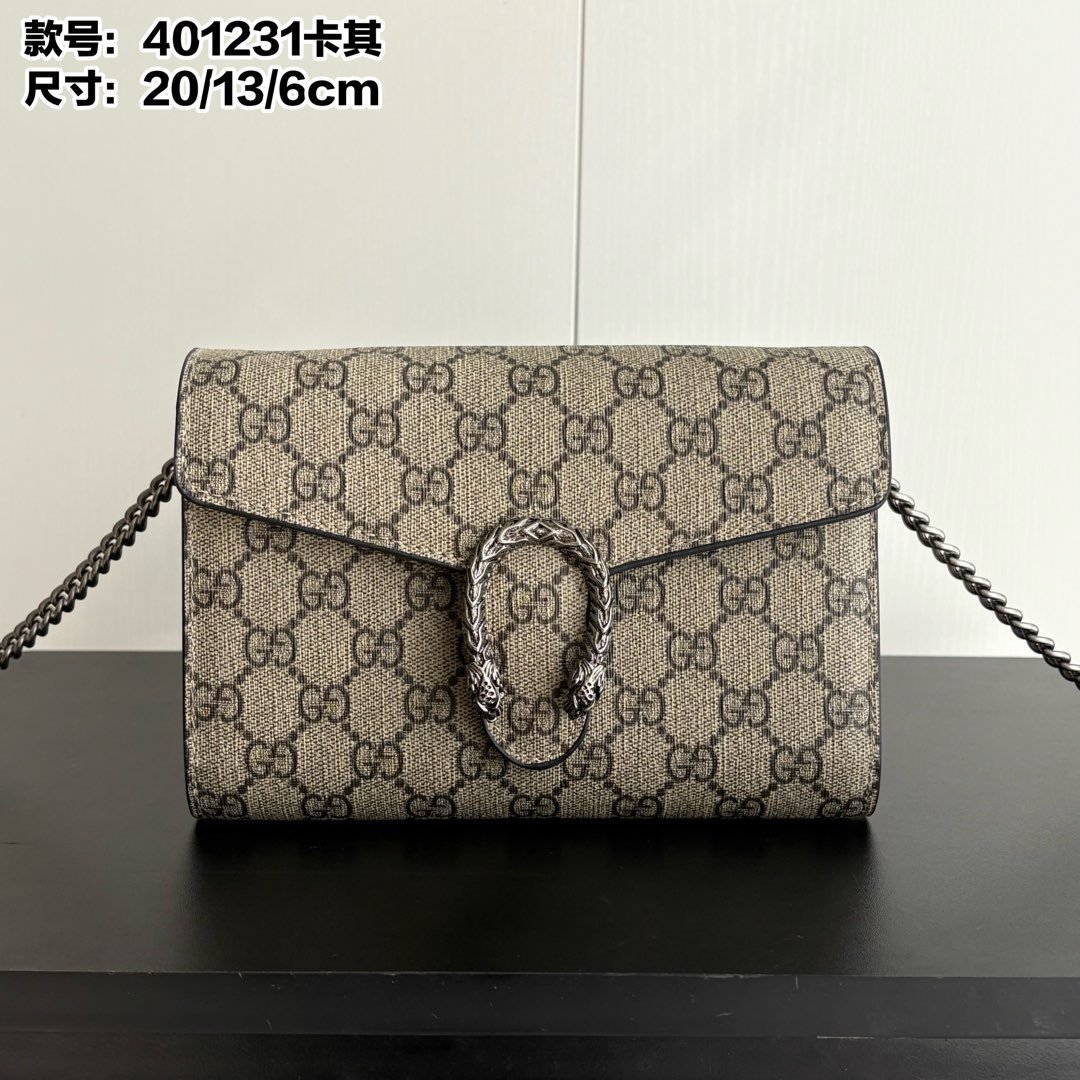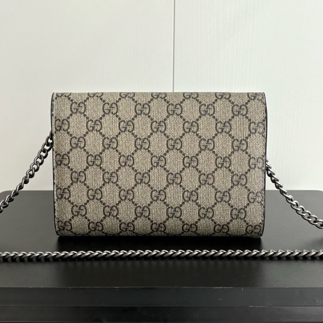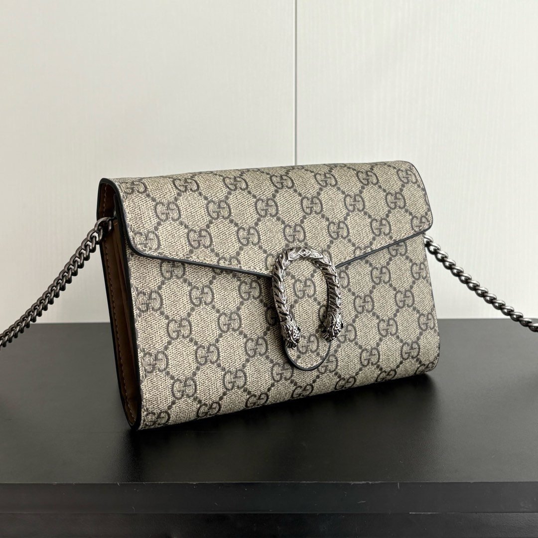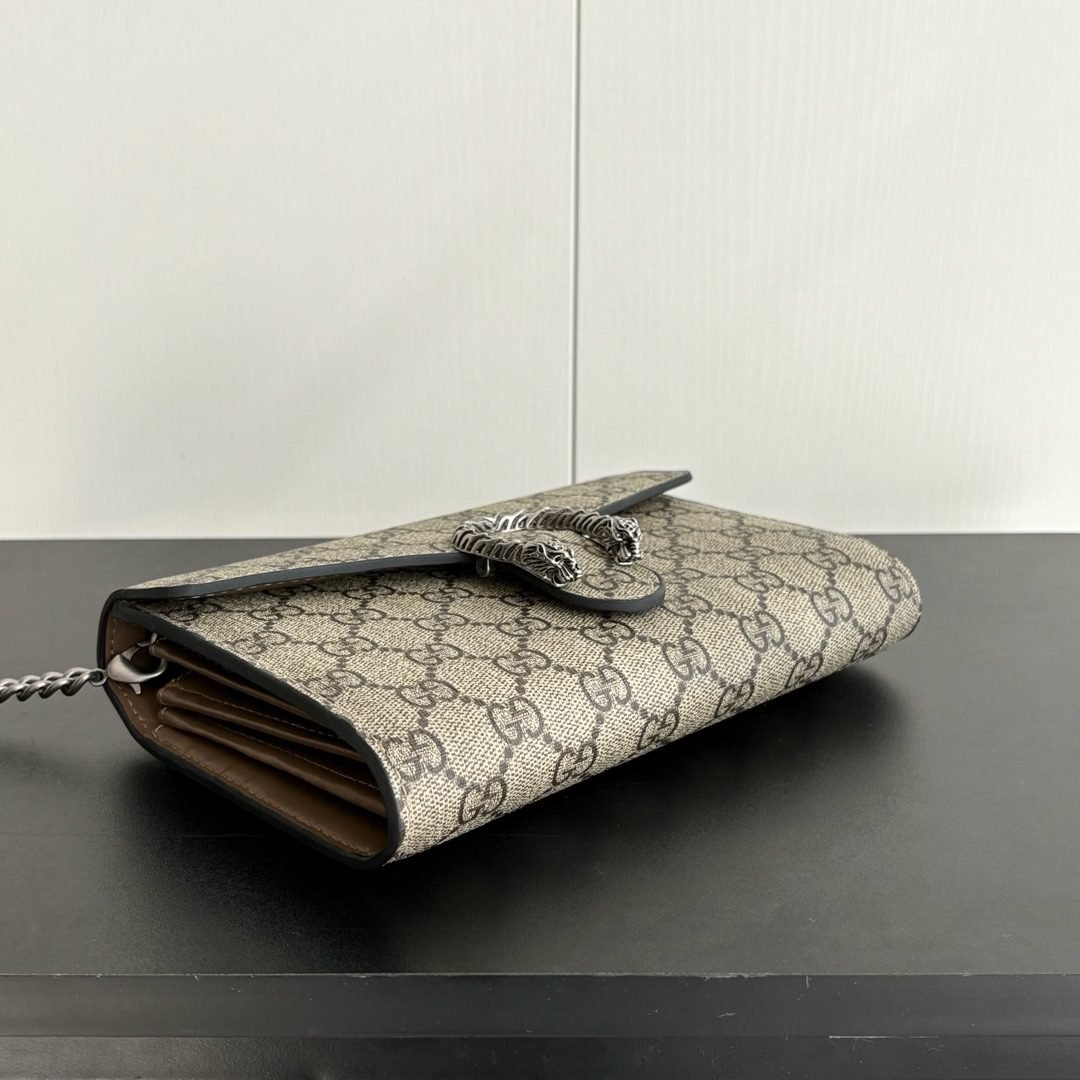 GG Dionysus WoC chain mini handbag/wallet, equipped with tiger head spur buckle and flip design, with multiple compartments inside to meet daily travel needs. Size: 20×13×6cm