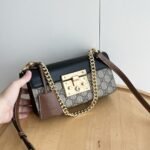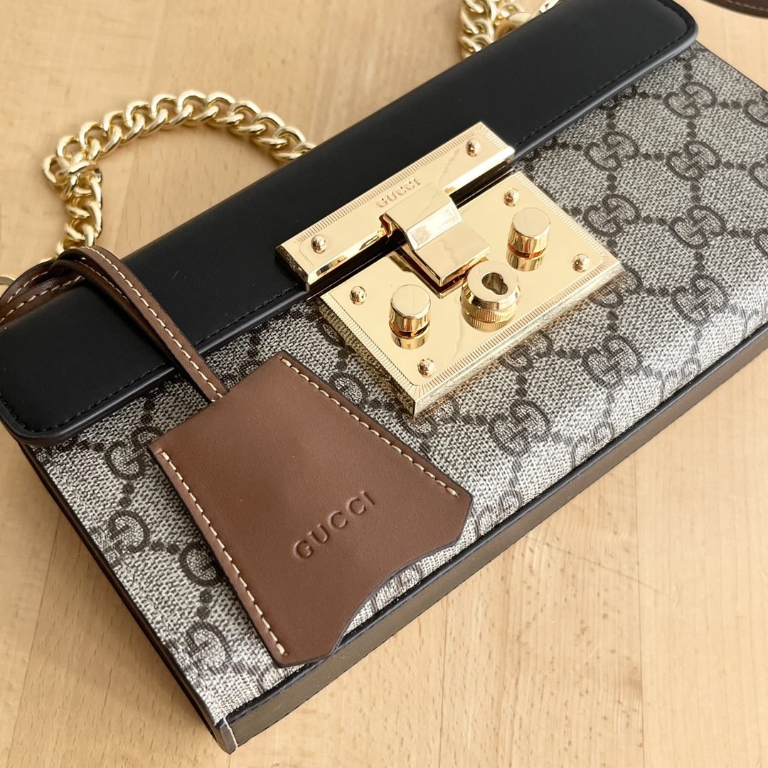 Padlock GG original leather series, distinctive inspiration design, adding lock closure structured small shoulder bag, sliding chain bag can be a variety of ways to carry, different occasions free conversion of essential versatile items. Shoulder, cross-body, hand-held casual and adjustable, size: 22×11.5×7.5cm