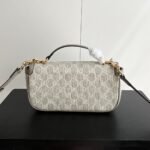 The new Horsebit 1955 series handbags embody the double-ring and elongated design that inherits the brand’s equestrian roots. This small handbag is crafted from the brand-new GG canvas, featuring a unique hot embossing technique that renders exquisite patterns, creating a soft and refined touch. Dimensions: 22.6×12.7×5.6cm