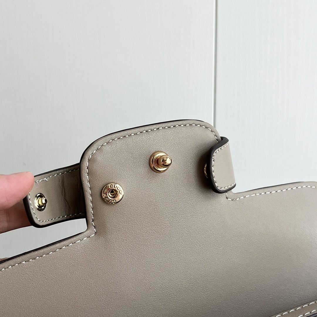 The new Horsebit 1955 series handbags embody the double-ring and elongated design that inherits the brand’s equestrian roots. This small handbag is crafted from the brand-new GG canvas, featuring a unique hot embossing technique that renders exquisite patterns, creating a soft and refined touch. Dimensions: 22.6×12.7×5.6cm