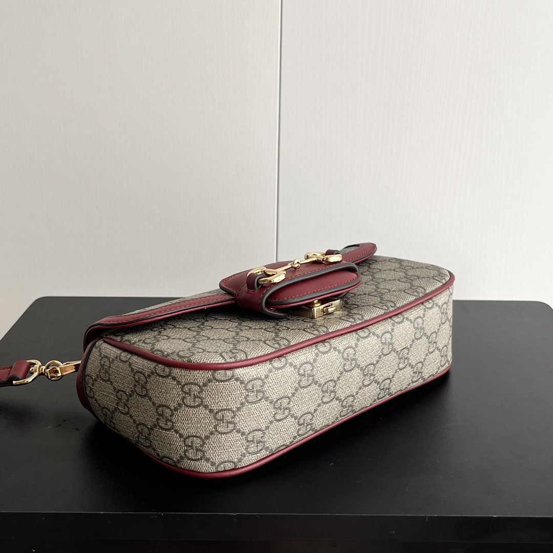 The new Horsebit 1955 series handbags embody the double-ring and elongated design that inherits the brand's equestrian roots. This small handbag is crafted from the brand-new GG canvas, featuring a unique hot embossing technique that renders exquisite patterns, creating a soft and refined touch. Dimensions: 22.6x12.7x5.6cm