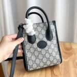 Since its launch, the Retro mini tote has been one of the brand’s iconic elements with its interlocking double G-straight design. The well-known brand symbol blends seamlessly with leather details, making this tote bag the center of attention. The classic double G letter interwoven canvas material gives the entire design a strong brand connotation. Size: 16 × 20 × 7cm