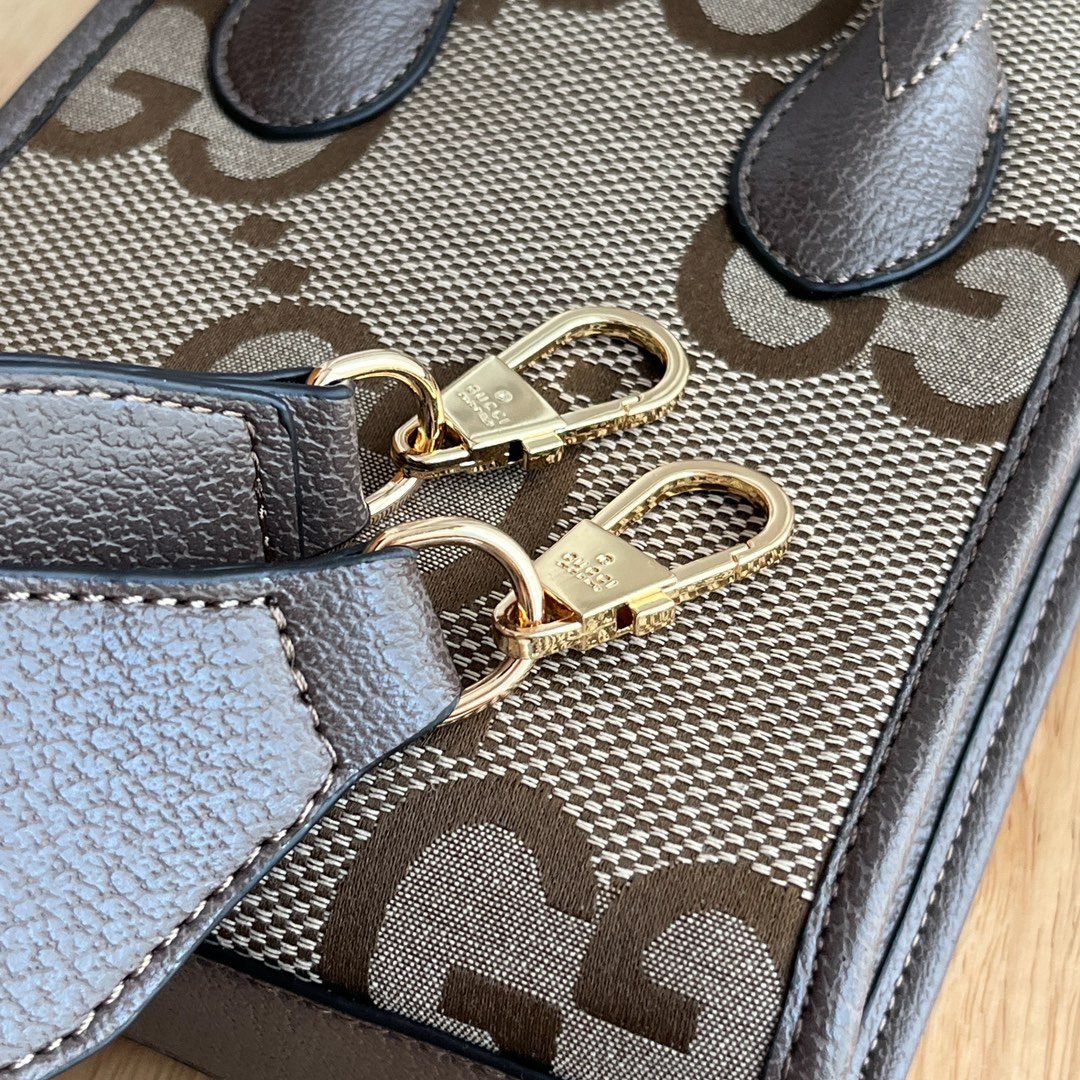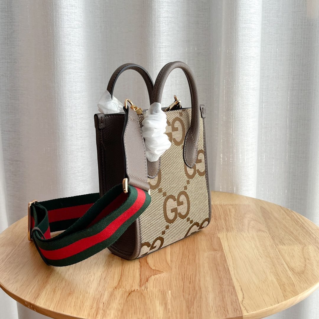 Since its launch, the Retro mini tote has been one of the brand’s iconic elements with its interlocking double G-straight design. The well-known brand symbol blends seamlessly with leather details, making this tote bag the center of attention. The classic double G letter interwoven canvas material gives the entire design a strong brand connotation. Size: 16 × 20 × 7cm