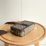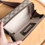 The new Horsebit 1955 series handbags embody the double-ring and elongated design that inherits the brand's equestrian roots. This small handbag is crafted from the brand-new GG canvas, featuring a unique hot embossing technique that renders exquisite patterns, creating a soft and refined touch. Dimensions: 22.6x12.7x5.6cm