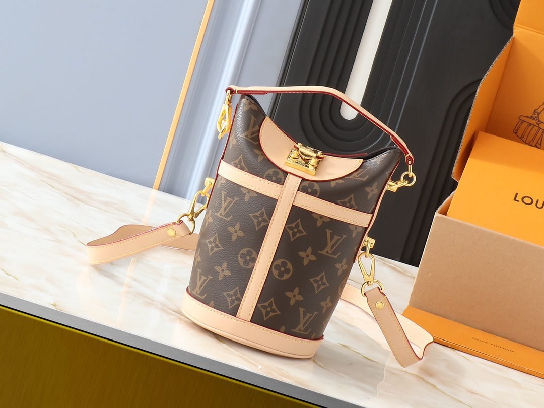 The beloved Duffle bag from the Spring/Summer collection is a modified design by womenswear artistic director Nicolas Ghesquière. Tailored from soft Monogram canvas with a finely crafted signature S-shaped closure, this handheld or shoulder bag is a stylish accessory for daytime or evening looks. Details – 22.0 x 23.0 x 14.0 cm (L x H x W)