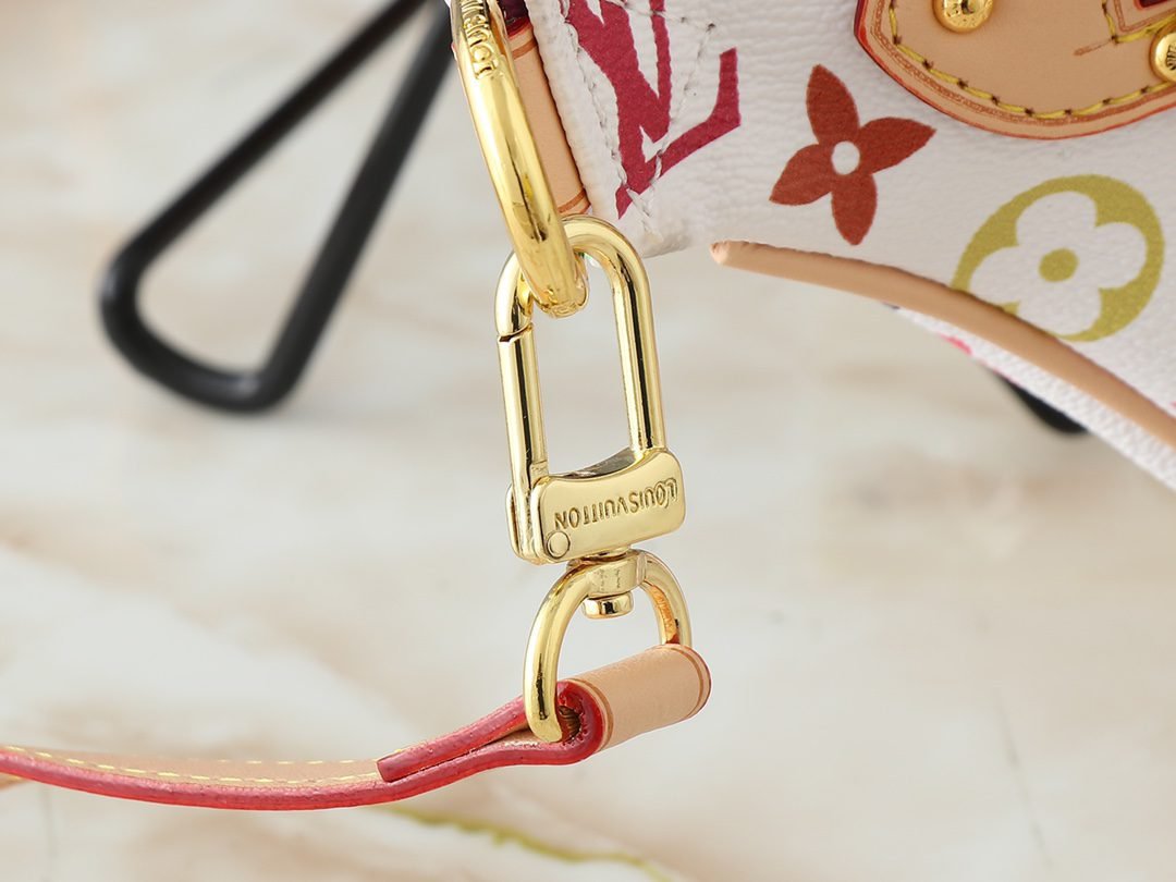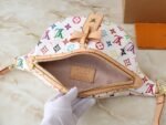 The Alma BB bag embraces the joyous tone of the Louis Vuitton x Takashi Murakami collaboration, subtly harking back to the Art Deco designs of the 1930s, with its Monogram-coated canvas in the playful hues of Takashi Murakami's writing, and its Toron handles, bottom, detachable shoulder strap, and LV x TM key pouch in classic cowhide leather. 17.5 x 11.5 x 23.5 cm (H x W x L) x length)
