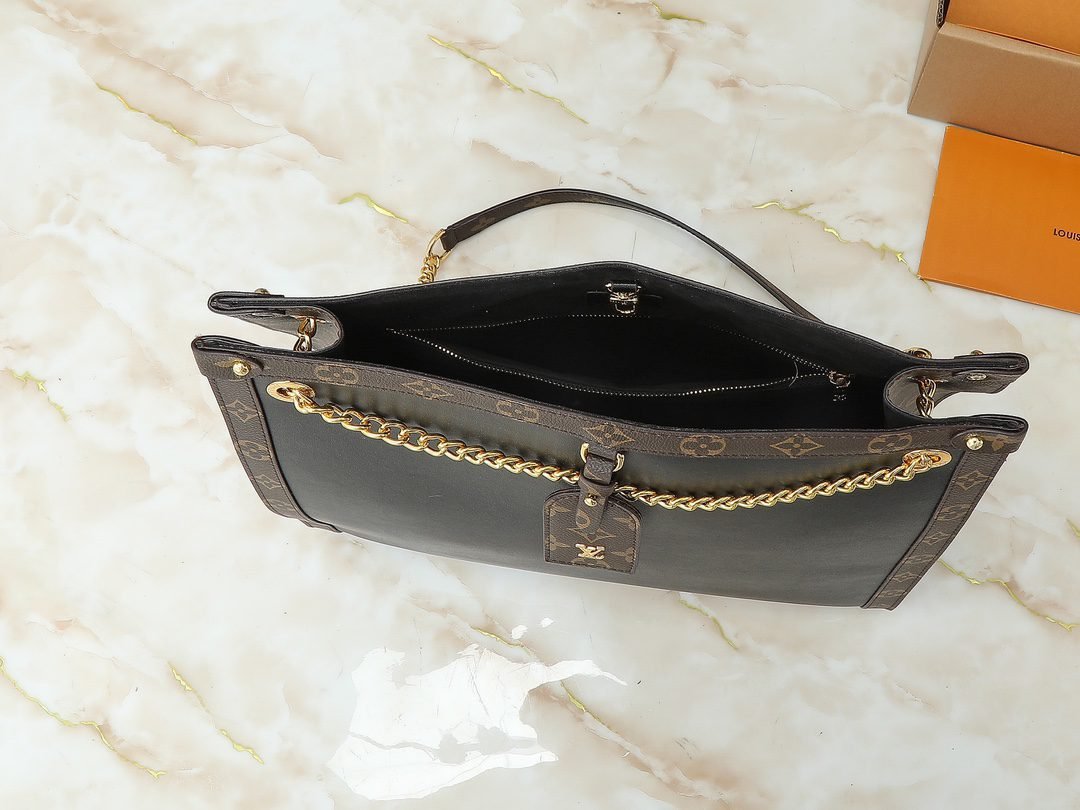 The Nova Medium bag from the 2025 Cruise Spring show is a subtle mirroring of the elegant cowhide leather, combining a sense of spontaneity and elegance, with LV nameplate and Monogram canvas trimmings for a classic touch, and a glittering sliding chain for a sophisticated finish.