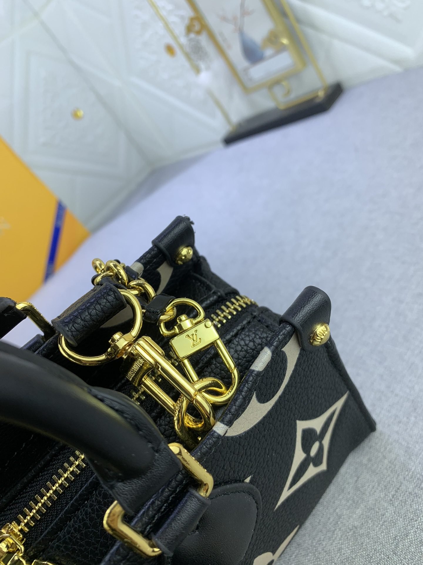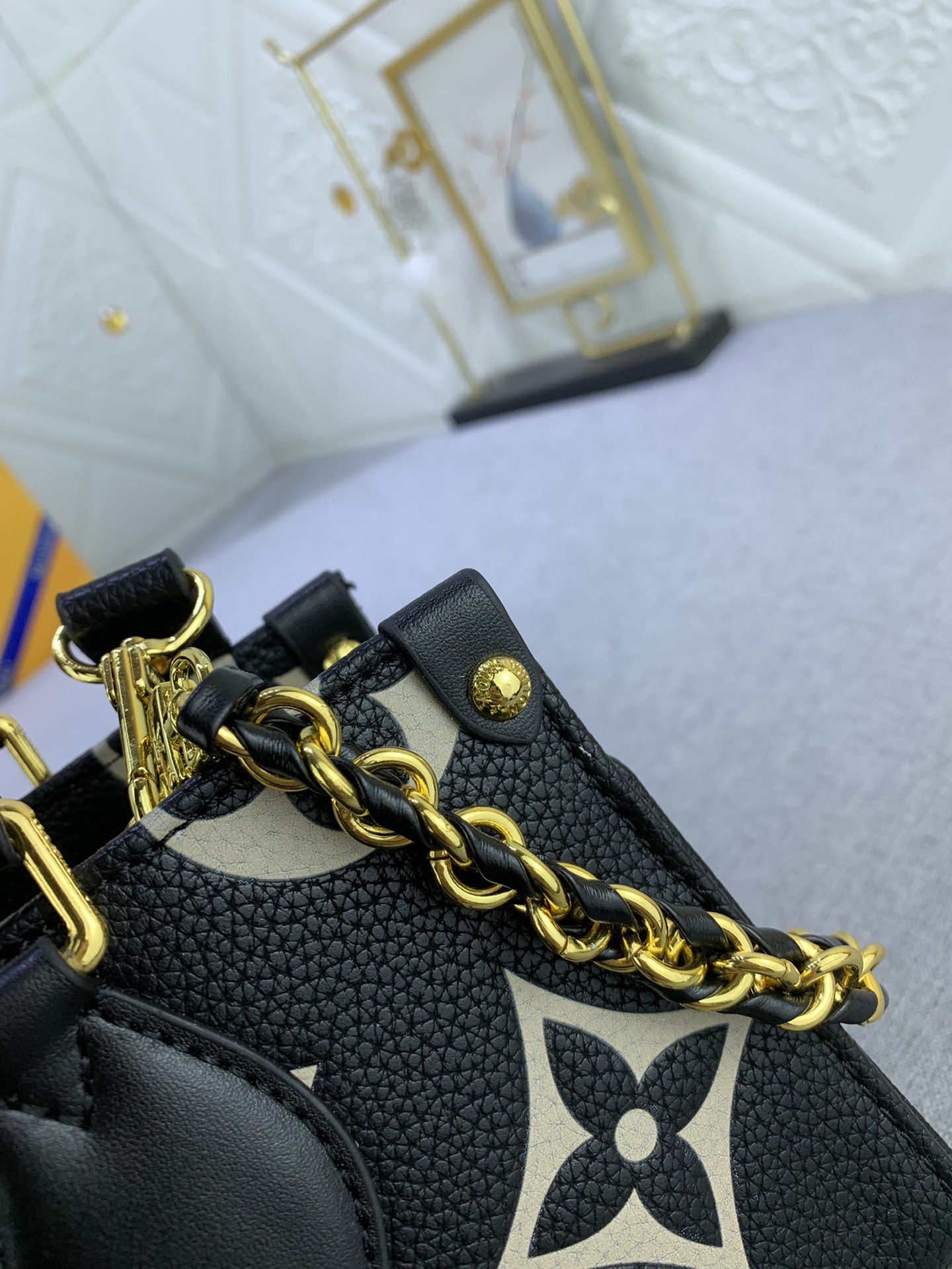 Introducing the OnTheGo Small Tote design, the OnTheGo East West bag reinvents the ample shape of the East West in Monogram Empreinte leather, with the Giant Monogram embossed on the leather body and a neatly organized interior for storing everyday essentials. Top handle and detachable leather chain shoulder strap allow for versatile carrying. 25 x 13 x 10 cm (L x H x W)