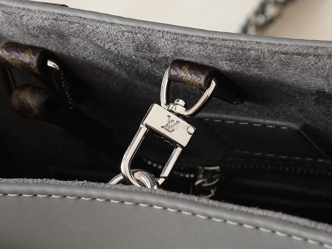 This Nil handbag shimmers with the elegance of cowhide leather, while beaded studs secure the Louis Vuitton Paris patch to the front. The side closures are urban and the main compartment zipper is embellished with the LV monogram. Dimensions: 25.0 x 17.5 x 11.0 cm (L x H x W)