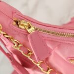 This shoulder bag is uniquely lined with nylon and comes with leather shoulder straps and a back pocket. The metal accessories give it a bright color, making it low-key, luxurious, and versatile. It is a unisex and timeless bestseller, with dimensions of 30x21.5x12cm