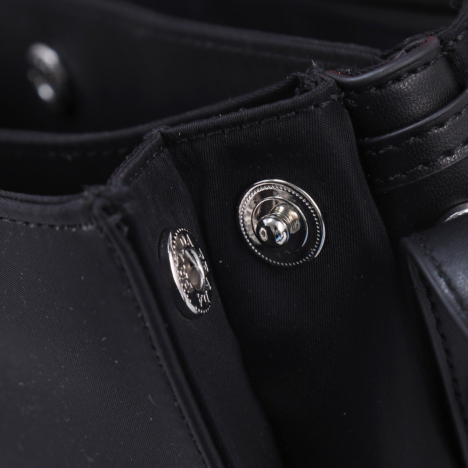This medium-sized tote bag is made of innovative recycled nylon fabric, with a simple and stylish design. The bag is equipped with exquisite Saffiano leather handles, adorned with the iconic enamel coated triangular metal logo, conveying the brand message. Large space capacity is very practical, with dimensions of 40cm in length, 34cm in height, and 16cm in bottom