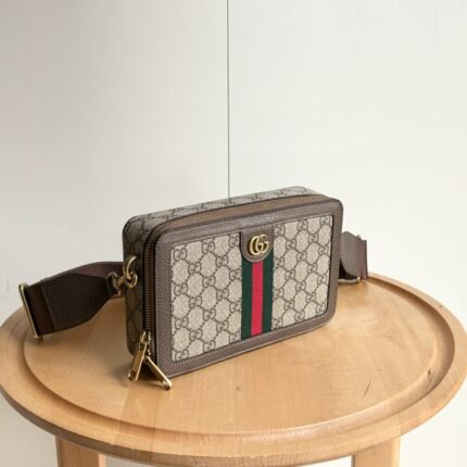 The Ophidia series has launched a variety of innovative bags in new sizes and styles, and this mini handbag with double handles is one of its masterpieces. This ultra mini handbag is ingeniously embellished with brand iconic elements such as webbing and double G, adding another eye-catching item to the collection. Beige and ebony GG Supreme canvas, brown leather rolled edges, gold toned accessories, cotton linen blend lining, as a selected item with Gucci Tag