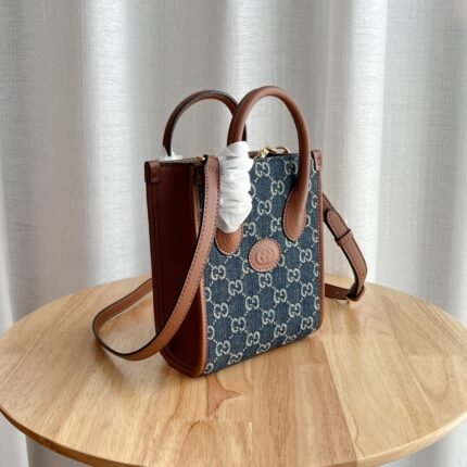 Since its launch, the Retro mini tote has been one of the brand's iconic elements with its interlocking double G-straight design. The well-known brand symbol blends seamlessly with leather details, making this tote bag the center of attention. The classic double G letter interwoven canvas material gives the entire design a strong brand connotation. Size: 16 × 20 × 7cm